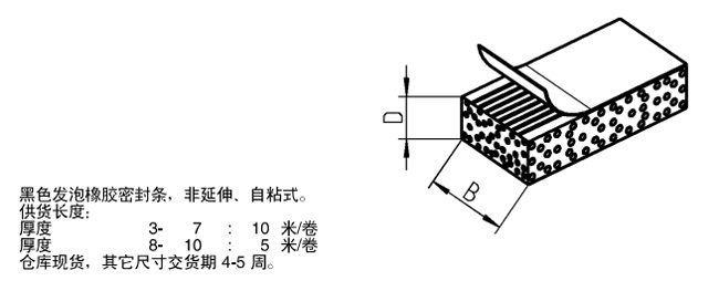 产品材质: 1、采用优质三元乙丙橡胶,发泡工艺制作。 2、背面采用进口双面胶带,夹层为网格状玻璃纤维。 | |